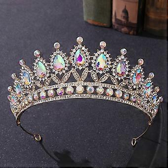 Gold AB Vintage Bridal Tiara Crystal Crown for Women Elegant Rhinestone Diadem for Wedding Prom