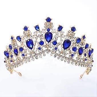 Luxury Bridal Crystal Crown Headband with Rhinestones Full Round Baroque Wedding Tiara 16cm