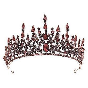 Red Tiara for Bride Handcrafted Crystal Wedding Crown with Durable Handwired Frame for Prom