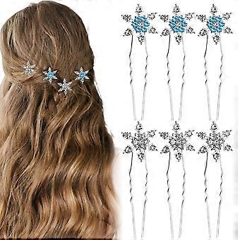 10PCS Snowflake Hair Clips Set, Blue and White Rhinestone UShape Hair Pins for Christmas Bridal Styling