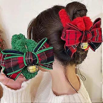 Christmas Hair Claw Clips Velvet Bow Bell Large 4.7in Festive Accessories for Women Girls Pack of 2
