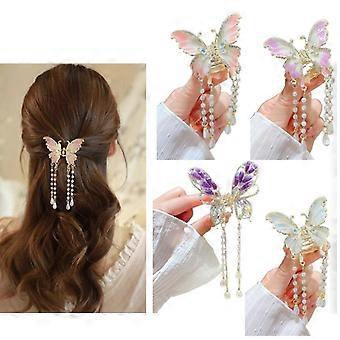 Butterfly Hair Clips with Tassels 4 Pack Rhinestone Crystal Barrettes Secure Alligator Clips for Women Girls