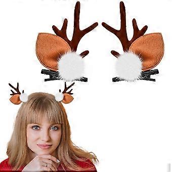 Reindeer Antler Hair Clips with Plush Ears and Pine Cones, Christmas Hair Accessories for Adults