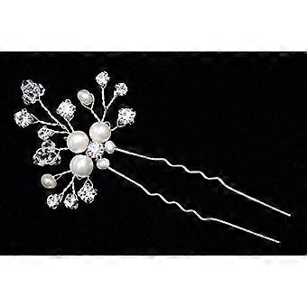 Set of 2 Handmade Freshwater Pearl and Crystal Hair Pins for Bridal Hairstyles Silver Plated
