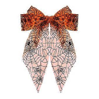 Halloween Hair Accessories Spider Web Bow Hair Clip with Oversize Long Tail for Women and Girls