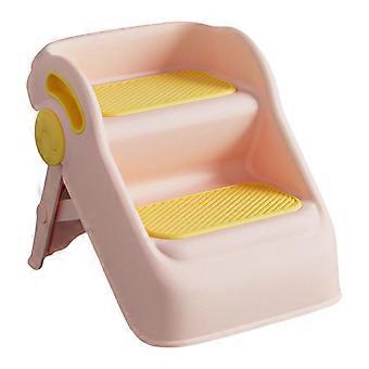 Double Levels Kids Step Stool Foldable Two Tier Non Slip Pink For Bathroom And Kitchen Safe Folding Design