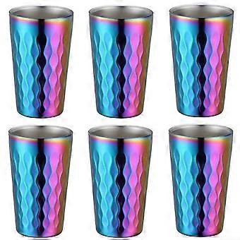 Doublewalled stainless steel water cups, 330 ml, stackable drinking cups with spacesaving design for travel and storage, colorful, 6piece set.