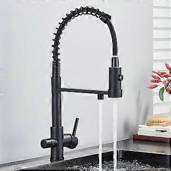 Drinking Water Kitchen Faucet, Black Kitchen Sink Faucet, Brass Kitchen Faucet with Filter, 360° Rotating Faucet, Dual Mode Sink Mixer, Matte Black
