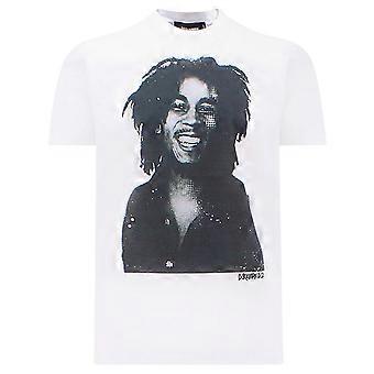 Dsquared2 Cool Fit Bob Marley Quote Design White T-Shirt