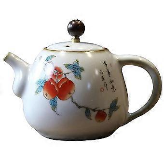 Handpainted Chinese Ceramic Teapot 270ml with Floral Bird Design for Oolong and Black Tea