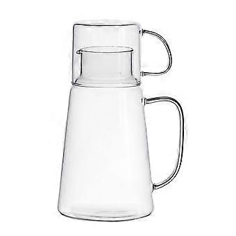 Elegant Glass Water Carafe with Cup, Large Capacity Heat Cold Resistant Jug for Bedroom or Office