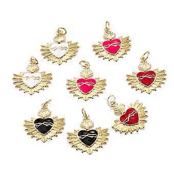Real 18K golden Plated Brass Enamel Pendants with Jump Rings Long-Lasting Plated Heart Mixed color 20.5x20x2.5mm Hole: 3.5mm
