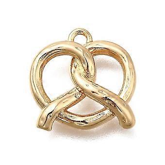 Brass Pendants Pretzel Charms Real 14K golden Plated 12x12.5x3mm Hole: 1.2mm