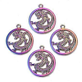 Alloy Pendants Cadmium Free Lead Free Ring with Chinese Dragon Rainbow color 37x32x2mm Hole: 3mm
