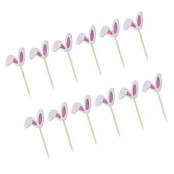 Easter Cake Decoration Set Rabbit Ear Shape Toppers Festival Cake Accessories Suitable for Holiday Parties, Pack of 12
