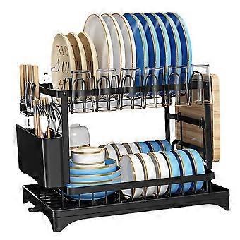 2 Tier Dish Drying Rack with Drainboard Aluminum Large Capacity Kitchen Counter Organizer with Utensil Holder