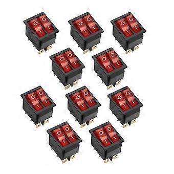 10PCS KCD8 Red Boat Power Rocker Switch 31x25mm Double Light Indicator 16A 250V 20A 125V