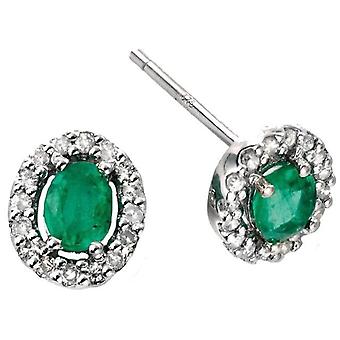 Elements Gold Emerald and Diamond Cluster Earrings - Green/Silver