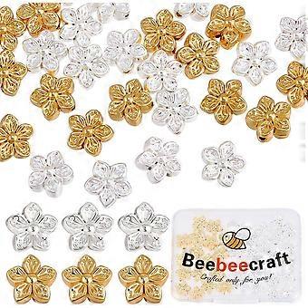 50Pcs 2 Colors Flower Metal Beads Peach Blossom 18K Gold & 925 Sterling Silver Plated 0.5mm Hole Floral Loose Spacer Bead for Jewelry Making Bracelet