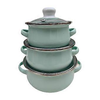 Enamel Pot Set Of 3 With Lid Light Blue Soup Pot Stew Pot For Cooking