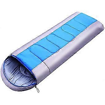 English translation: 'Camping sleeping bag for warm and cool weather, autumn, lightweight, waterproof (Blue)'