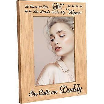 Engraved Frame Picture Photo Frame - So There is This Girl She Calls Me Daddy Tabletop 4" x 6" Vertical Natural Father Daughter for New Dad Gifts Firs