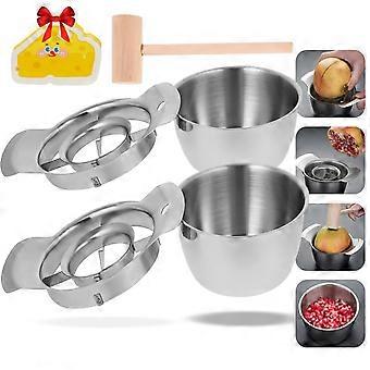 Stainless Steel Pomegranate Deseeder Tool with NonSlip Base, Cutter, Bowl and Wooden Hammer