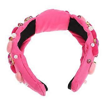Rhinestone Headband with Soft Velvet Lining, Crystal Padded Hair Accessory for Wedding and Party (Pink)
