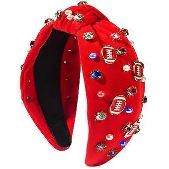 Football Headband for Women Moms with Pearls and Rhinestones, Knotted Game Day Sports Accessory