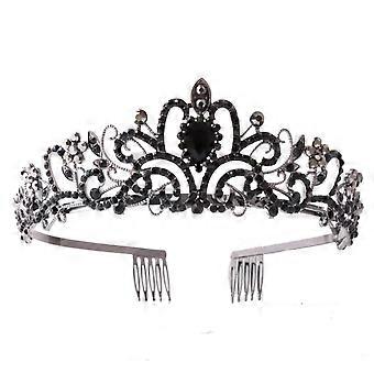 Black Crystal Bridal Crown Elegant Black Design for Wedding or Performance Headband All Black