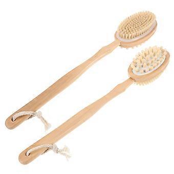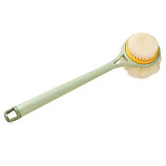 DualSided Bath Brush with Handle Soft Bristles and Massage Pad for Back Scrubbing and Exfoliating