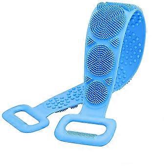 Silicone Bath Brush with Long Handle Double Sided Design Exfoliating Back Scrubber Blue