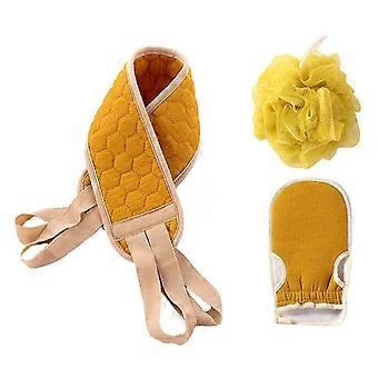 Bath Back Scrubber with Secure Grip Loops, Long Handle Shower Exfoliating Brush Strap Yellow