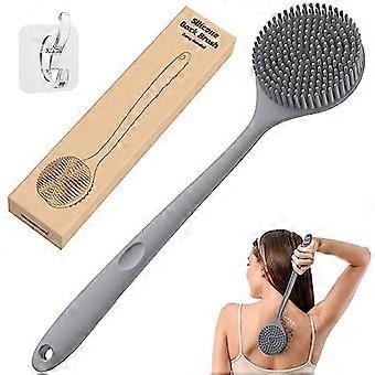 Silicone Back Scrubber with Long Bent Handle, DualSided Bristles Shower Brush for Exfoliating