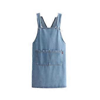 Crossback Denim Apron with Adjustable Cotton Straps and Large Pockets for Cooking and Gardening