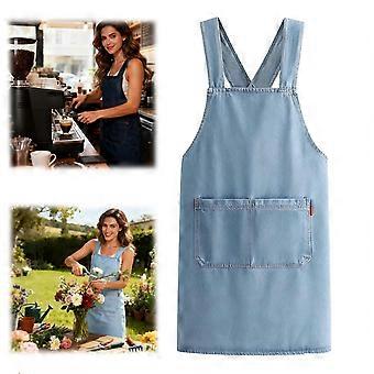 Cotton Denim Cross Back Apron with Adjustable Fit and Reinforced Pockets for Kitchen or Workshop