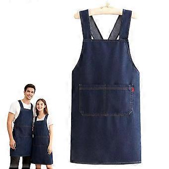 Kitchen Apron Cross Back Cotton Denim Chef Apron with Dual Pockets for Men and Women