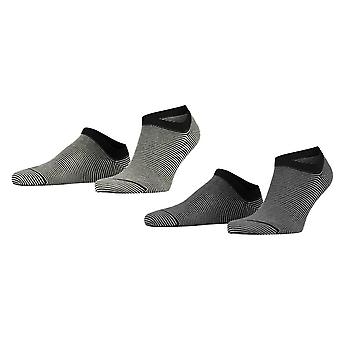 Esprit Allover Stripe 2 Pack Sneaker Socks - Black/Grey Mix