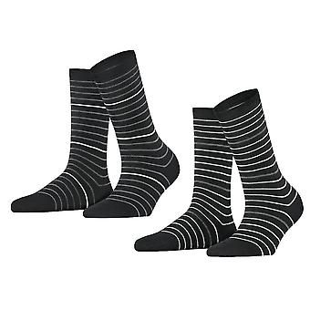 Esprit Fine Stripe 2 Pack Socks - Black