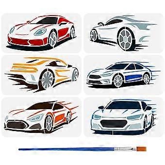 6 Styles Fast Sports Car Stencils with a Brush 11.8x5.9Inch Racing Car Pattern Painting Stencils Speeding Car Drawing Template PET Transportation Them