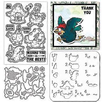 Cartoon Chicken Clear Stamps Cutting Dies PET Painting Stencils for Card Making Funny Animal Chicken Silicone Stamp Metal Greetings Die Cuts PET Paint