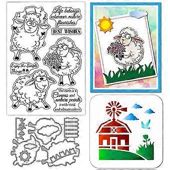 Funny Cartoon Sheep Clear Stamps Cutting Dies PET Painting Stencils for Card Making Words Silicone Stamp Animals Sheep Die Cuts House PET Stencils for