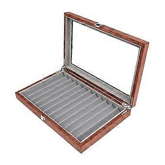 Fountain Pen Display Case Wooden 3 Layer Organizer with Glass Lid for 12 Pens Collectors
