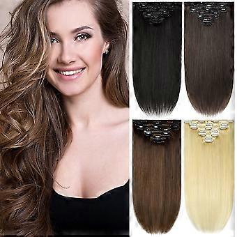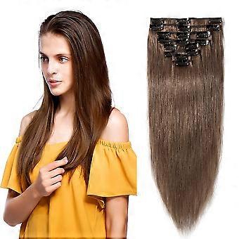 14 Inch Light Brown Clip in Hair Extensions Seamless Straight Remy Human Hair Full Head Set