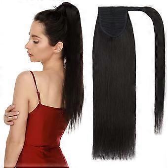 Human Hair Ponytail Extension Natural Black 22 Inch Clip In Claw Clip Wrap Around Hairpiece