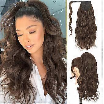 Long Wavy Ponytail Extension with Bangs for Women 20 Inch Wrap Around Synthetic Hairpiece Moss Brown
