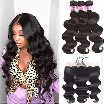 Brazilian Virgin Body Wave Hair Bundles with 13x4 PrePlucked Lace Frontal Human Hair Set 16 18 20+14