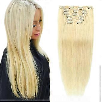 Clip in Human Hair Extensions Straight Blonde #613 Seamless 16 Inch No Shedding for Women
