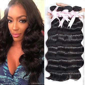 20 Inch Brazilian Deep Wave Human Hair Bundle, Unprocessed Virgin Weave Extensions Natural Black