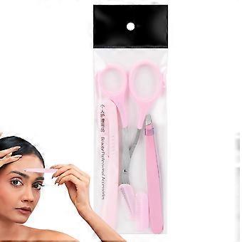 Eyebrow Scissors with Comb 3-Piece Set Stainless Steel Non-Slip Pink Eyebrow Grooming Scissors For Men And Women